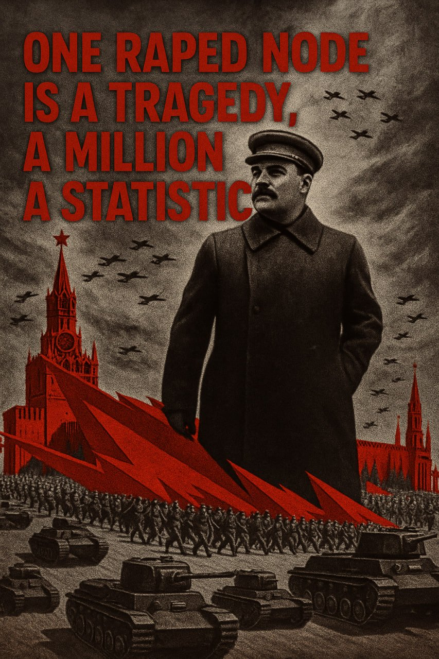 Various loosely affiliated factions of the Coremunists had been probing at the Knotzis defenses for well over a year at this point, launching out of band transaction attacks against their nodes but Fuhrer Luke Dash Jr's filters remained impervious to their belligerencies.